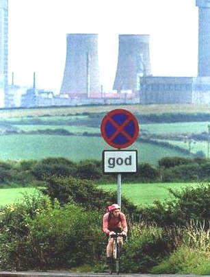 This is actual hidden camera footage of God riding a bicycle. He was on a whistle-stop tour of Northern power stations when the photo was taken.