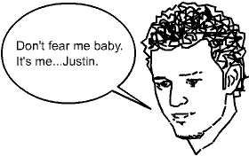 Justin Timberlake So I give Justin a few tips and pointers. I would hardly call myself him mentor....anyway, soon the relationship soured. Justin spent less and less time with the celebrities and more and more time pressing his face up against my window. He's lost it. Shhhh...I think that's him now. I must go. May 21 2003 Freedom! Cursed, wretched freedom! Mark and Howard let me go. They didn't even have the good grace to drop me home. They just unlocked the front door and told me to go. I ended up getting the tube back to my flat When I got home I was disappointed to find that there was no large pile of letters ready for me. It seems my absence was not greatly noted. I checked my email. Just spam. It's annoying...most people get spam from strangers, but I get them from my family - I get emails from my mum saying: "THEMANWHOFELLASLEEP - Would YOU like to have your ironing done, quicker and cheaper than you could imagine!?!" I deleted it all and went to bed. My siesta lasted until morning. May 20 2003 I have a nasty cold. To make things worse, I have been smoking heavily. To make things worse still, I have been kidnapped by Maoist rebels. I didn't know there were any Maoist rebels in north east London, but apparently there are. My current predicament is proof of the wonderful cultural diversity that is modern London. Years ago you might get kidnapped by the IRA, but anything else would have been some exotic fantasy. Actually, my kidnappers don't seem very exotic. One is called Mark, and the other one is called Howard. They're very polite and keep me supplied with food and drink and even Sky TV. To be honest, I'm quite enjoying it. I don't yet know what demands they've made and I'm in no particular hurry to know. I've told them that my family are people of integrity and won't be willing to pay a ransom. The flat I'm being kept at is pretty cushy, and I've got my eye on the spare bedroom. A lick of paint and it'll come up smashing. May 17 2003 The rain comes down. It's wet and tastes of water. This will simply not do. Today I went for a walk. I walked from my bedroom to the lounge, where I managed to crawl onto the sofa. Fortunately, I had left the television on last week, so there was no need for me to locate the remote control and switch it on. We must be grateful for such blessings. The news was on. A man in a suit was talking about a pig that was stuck in a well. It was a very moving story. Tears flowed down my cheeks. In the end they managed to rescue the pig, although it had broken a leg. I'm sure this all serves as a metaphor for something, but I can't for the life of me work out what. Maybe one day I will change the channel. May 14 2003 I slept late and awoke to discover that I had been chained to my computer. These were not metaphorical chain. Oh no, they were real, steel chains, that chafed and itched on my real wrists and ankles. They were heavy. I spent the morning weeing into a plastic cup, before I remembered that I had the key to the chains in my pocket. Whenever I get drunk I end up chaining myself to something. Why? I don't really know. My psychiatrist, Dr Morfeo suggested that I am preoccupied with the impermanence of things, the fact that things - and people can disappear at any time. I am always surprised and slightly relieved when I wake up in the morning and find that my bedroom has not run off. So far. So, to prevent things from disappearing, I chain myself to them. It's clumsy but effective. I worry about Dr Morfeo. Suppose he disappears? I will be left alone with my neuroses. I must give him a pay rise. May 12 2003 I bought a newspaper this morning. I instantly regretted it. Why are celebrities always saying that their heartbreak has only made them stronger? Whether it be a lost baby, a crippling drug addiction or a recovery from alcoholism, they are always saying how they are now better, stronger people. What is this obsession with self-improvement? All the setbacks and mishaps I have suffered have made me nervous, bitter and scared. That's how it works, isn't it? Life smacks you in the face and you learn not to stick your head above the parapet. Bloody celebrities. Not a brain between them. I was also disappointed by the lack of free gifts in my newspapers. There were some coupons, but they hardly count. I feed coupons to the pigeons. May 10 2003 Today I spent the day losing money on fruit machines. They seem so friendly at first, with their flashing lights and their funny noises, and every so often they give me some money. But it never lasts. Somehow I end up leaving the pub with my pockets empty, having eaten 10 cigarettes in an hour. Recently, I've started just unplugging the fruit machines before I play. I still put my money in, and it reduces the risk that I might actually win something - basically it speeds the whole process up considerably. Likewise, rather than buying food, putting it in my fridge and then not eating it, I have started just putting my money directly in the bin. It cuts out the middleman and I have never been slimmer. May 6 2003: I fear that everyone has gone to the moon. The flat is awfully quiet and the postman hasn't come round for weeks. Tomorrow it is time for my annual bath, and I have prepared myself by trying to remove my vest. It's a painful business as one of the sores on my back has been weeping for days, and seems to have attached itself to my undergarments. This would never have happened under Thatcher. Baths are funny things. You sit there in the water, sing a little song, and emerge totally clean! Someone once recommended that I use soap in the bath, but I'm suspicious. It seems to me that soap is exactly what 'they' want people to use in the bath. My father scrubbed himself clean with tree bark and my grandfather used limes. Soap is for ninnies and conscientious objectors. I hope the water will not be too hot. Last year I scalded myself rather badly after filling the tub with water straight from the kettle. May 5 2003: Excit