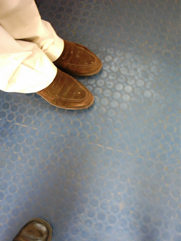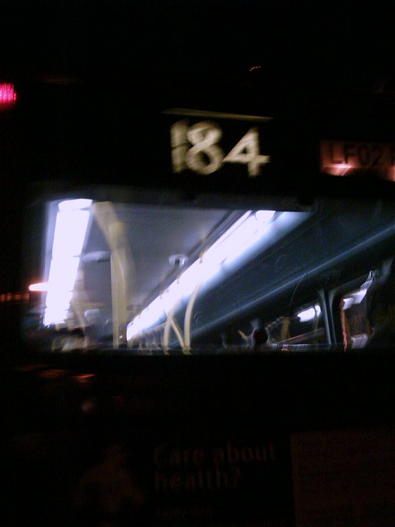Down the stairs we go... to who knows where...   The 184 bus... at night.  I always look stern and moody on public transport. I am neither here nor there.  Cracked tiles were hidden for years by carpet.