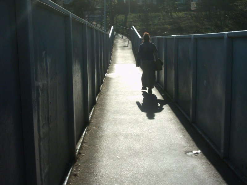 The view from my old window on a rainy day  A friend walking along the bridge over Alexandra Palace station  Half a dog  Turnpike Lane tube