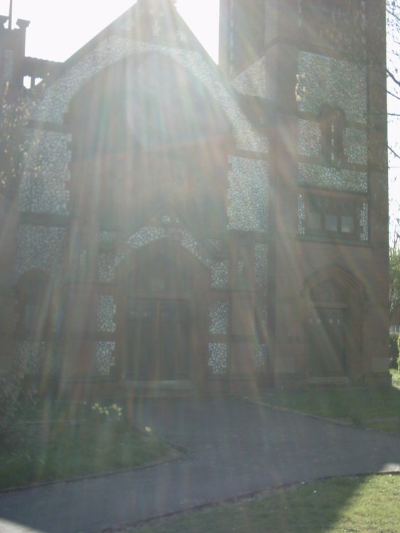 A goal  The view from the roof of the house I grew up in   The dreaded alarm clock  A church on Bounds Green Road. The sunlight makes it seem like a Philip Larkin poem.