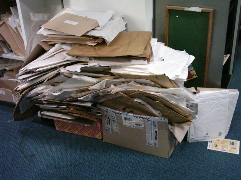 An ashtray at an office. It's size defies belief.  A very big pile of envelopes. Canary Wharf on a foggy day. It's steam, but it looks like it's on fire. Looking down on someone from an office stairwell.