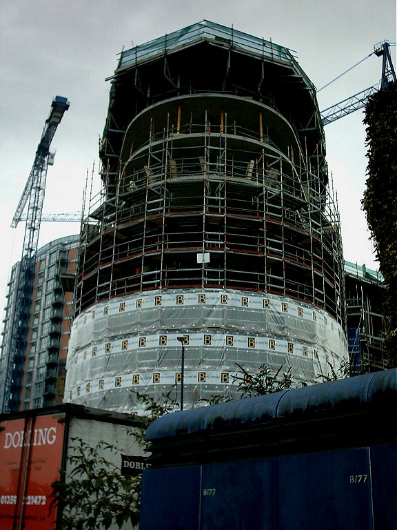 Buildings make me feel small.  I like the pattern of the circle on the uneven surface.  So many crunchy autumn leaves  A depressing building in Docklands.