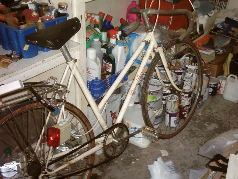 a pigeon in the street  My back garden   My bedroom. You can see me in the mirror  A basket of pegs