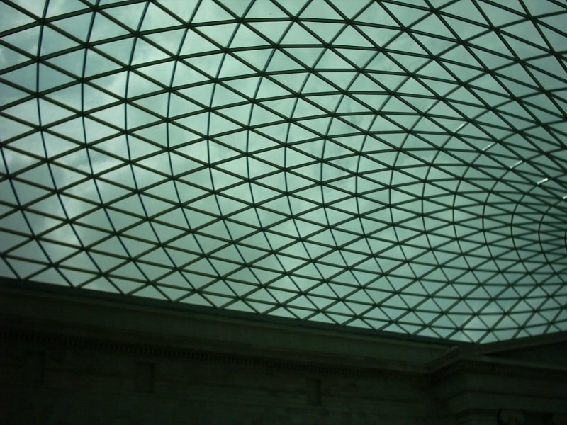 The new roof at the British Museum  A canary. Naked!  A disused Volvo in Bowes Road  Leaves. Pretty leaves...