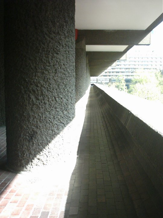 The escalators at Bounds Green station   A view from the Barbican  Some pillars in the Barbican   My feet