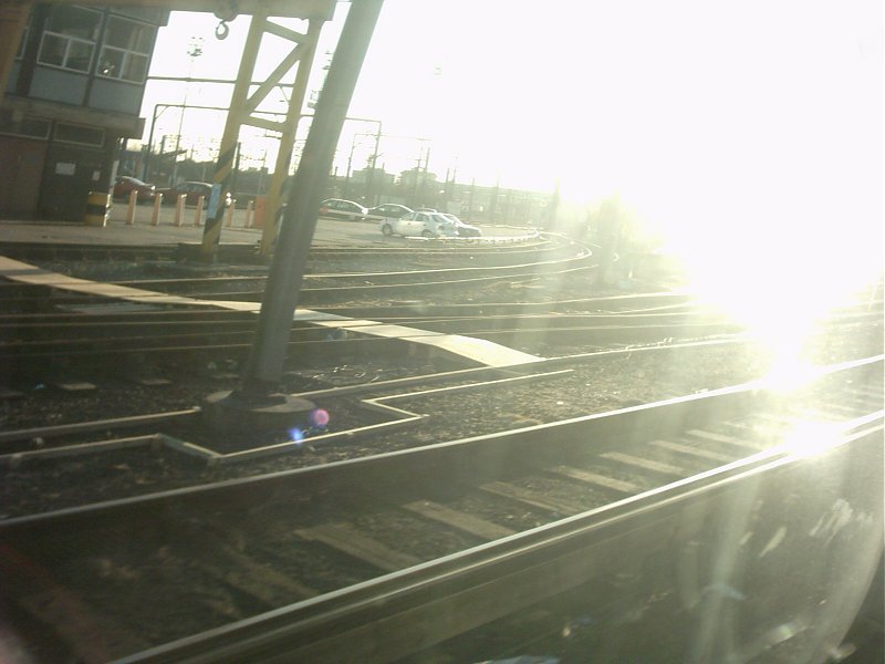 Shot taken from the window as train approached Willesden Junction  My foot, with an imprint left by a sock  My old bathroom. Ah, the glamour  A bed. I love the old wallpaper. Nostalgia.