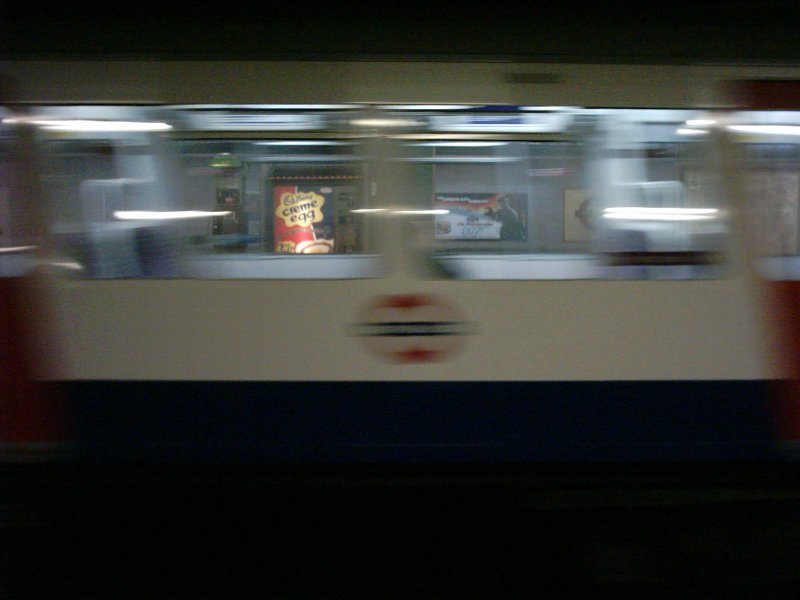 A central London tube station  A bike in the cellar   Moorgate. The only thing in focus is the ad for Creme Eggs  Bounds Green. Where I used to live