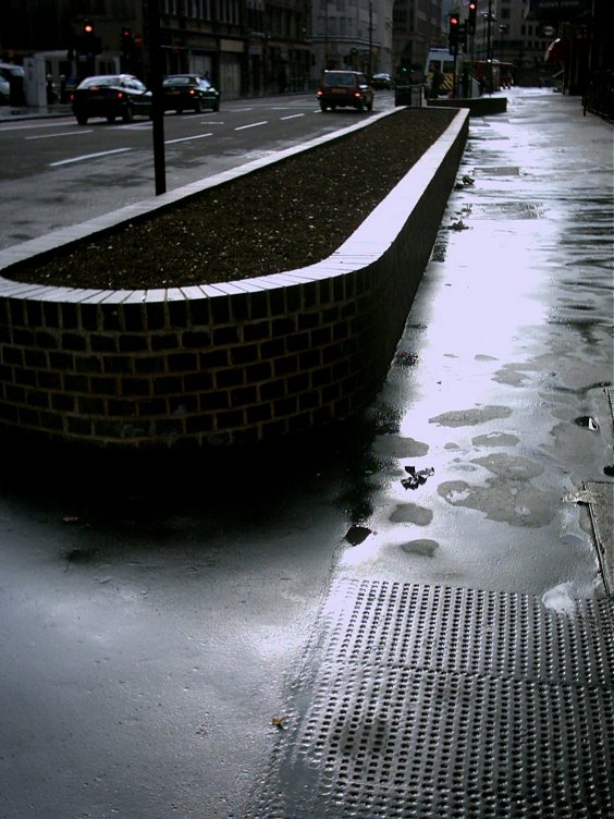 A shade of the Barbican.  A stately profile at the British Museum.  Pigeon shit.   Hmmmm....nice shoes, mister.