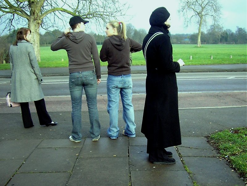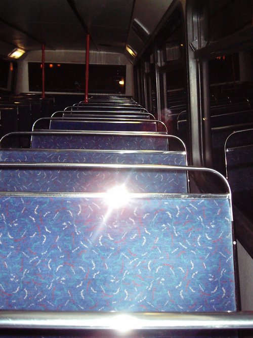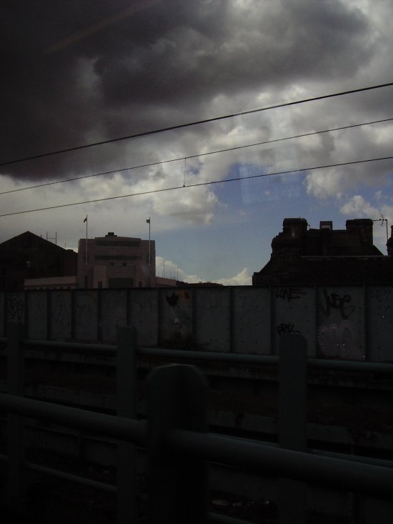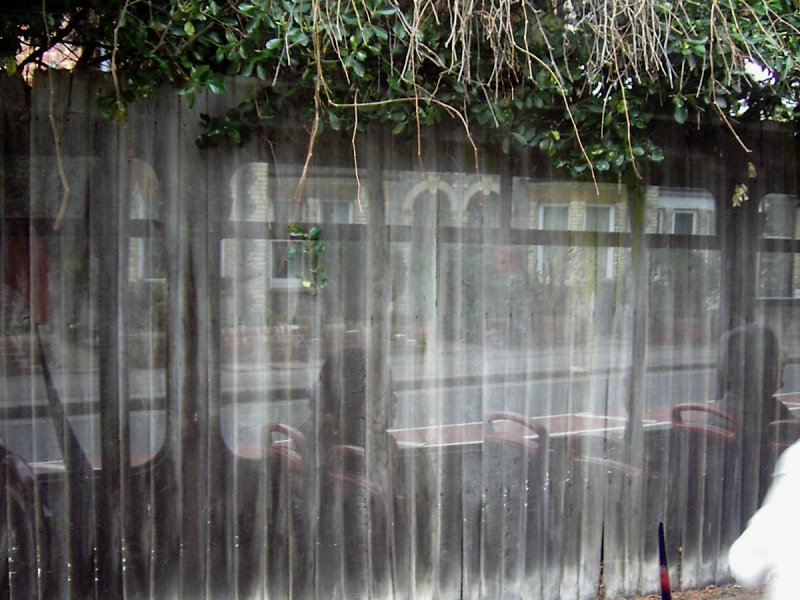 The debris of last night's kebab.   Steam.   A bus in a fence  Haringey.