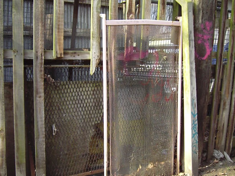 The gas ring behind Wood Green.   Netting.  Two piles of gravel.   Danger!
