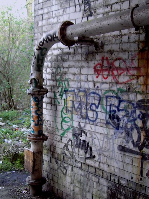 I like the font of the sign.  I look seedy.    More grafitti.   A futuristic cigarette.