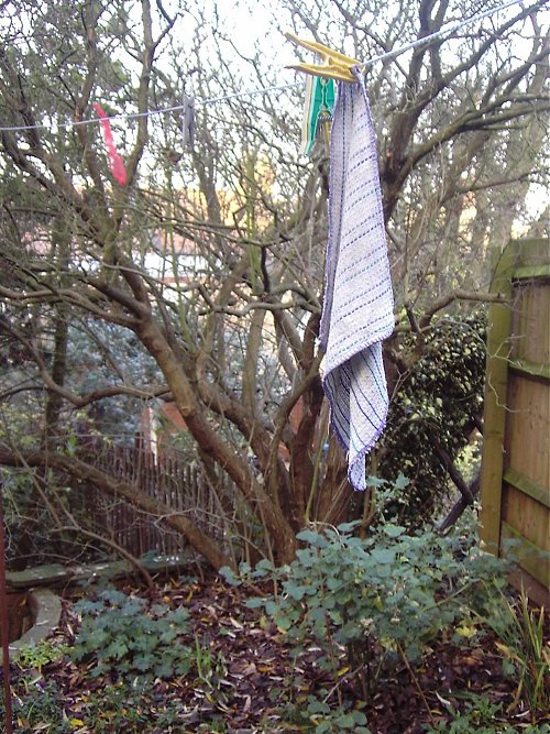 A picture full of movement.  A pathetic teatowel.  The glare blinds me.  Old. Building.