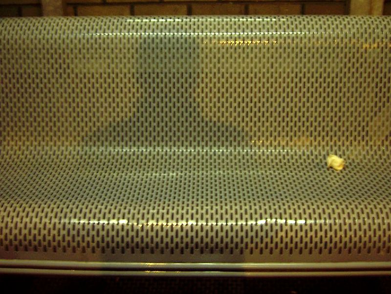What a dirty ceiling.   The black disc of eternal damnation. On a bus.   Hair stripe on bus.   Windows all bricked up. Bring out the undead.