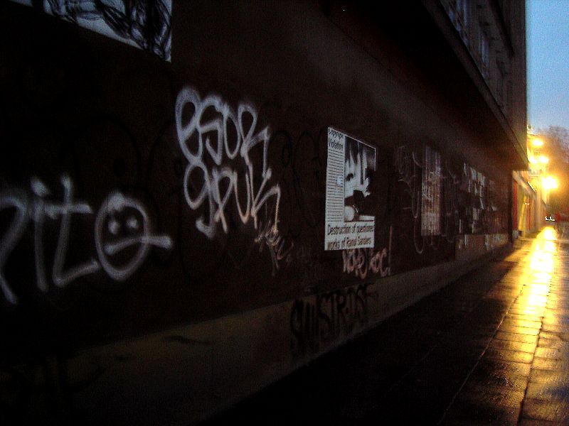 Piss.  Buildings near the Tate Modern.  The 184 bus has broken down.  This car is abandoned.