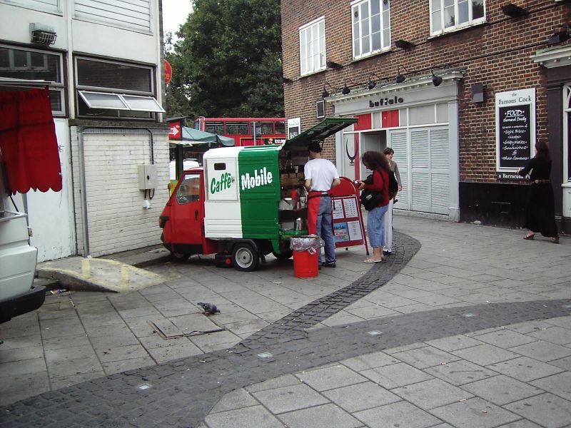 Writing in a bin. How sad.  More feet.  A van that serves coffee!  Miles and miles of squares.