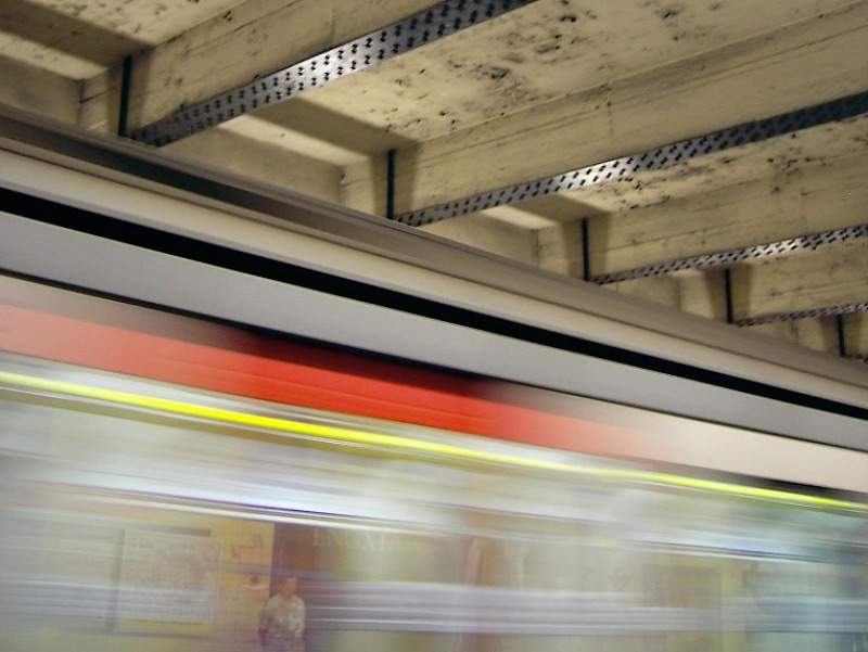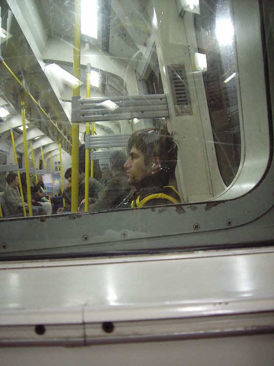 Crapola.   Look at the man at the bottom, caught behind the blur...  Ladybirds fucking.  Slags.   Me and other people, on the big train.