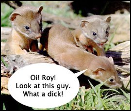 Weasels are devious little tykes! What further evidence do you need that animals are commie no-goodniks hell bent on chaos and destruction? Every time you eat a piece of meat, savour the fact that some monstruous animal is not tucking into you or one of your loved ones. There is only room on this planet for one dominant species - MANKIND! |